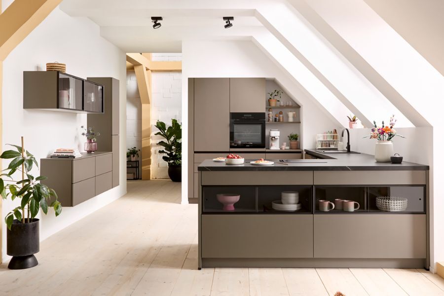 De Schüller Matera Sepiabruine keuken brengt kleur en karakter samen in een design dat uw interieur echt tot leven brengt. De hoogwaardige, anti-vingerprint UV-gelakte fronten zijn niet alleen elegant om te zien, maar voelen ook zacht aan en blijven overzichtelijk schoon. Dit is een keuken die je meteen wilt gebruiken én bewonderen.